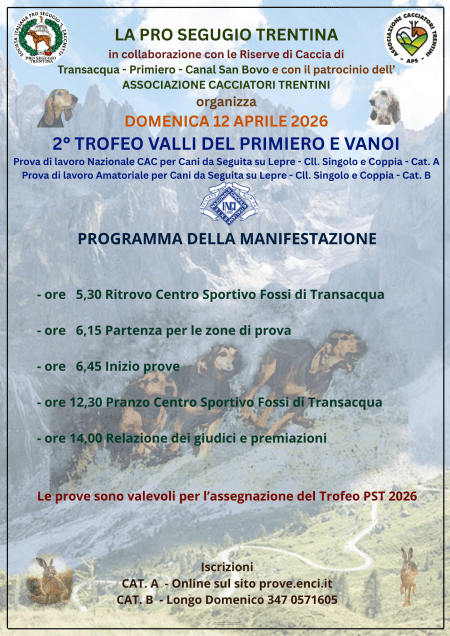 Due motivi fondamentali inducono a credere che il 2016 sia stato, per il movimento segugistico trentino, un anno da incorniciare. Il primo motivo è relativo al fatto che a seguito dell’approvazione da parte dell’Assemblea Generale dei Soci di un apposito statuto, è stata costituita un’Associazione volontaristica specializzata, a carattere provinciale, denominata “Pro Segugio Trentina”. Leggi tutto……..