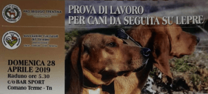 Divenuta ormai appuntamento fisso all’interno del circuito delle manifestazioni cinofile per cani da seguita proposte annualmente nella provincia di Trento, si è regolarmente svolta domenica 14 aprile 2019, la “Prova di lavoro nazionale per cani da seguita su lepre” aperta alle Cat. A e B e alle Classi Singolo e Coppie.